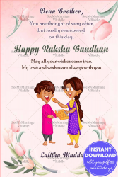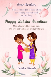Cartoon Pink Roses Raksha Bandhan Greetings, Wishes Card, Rakhi