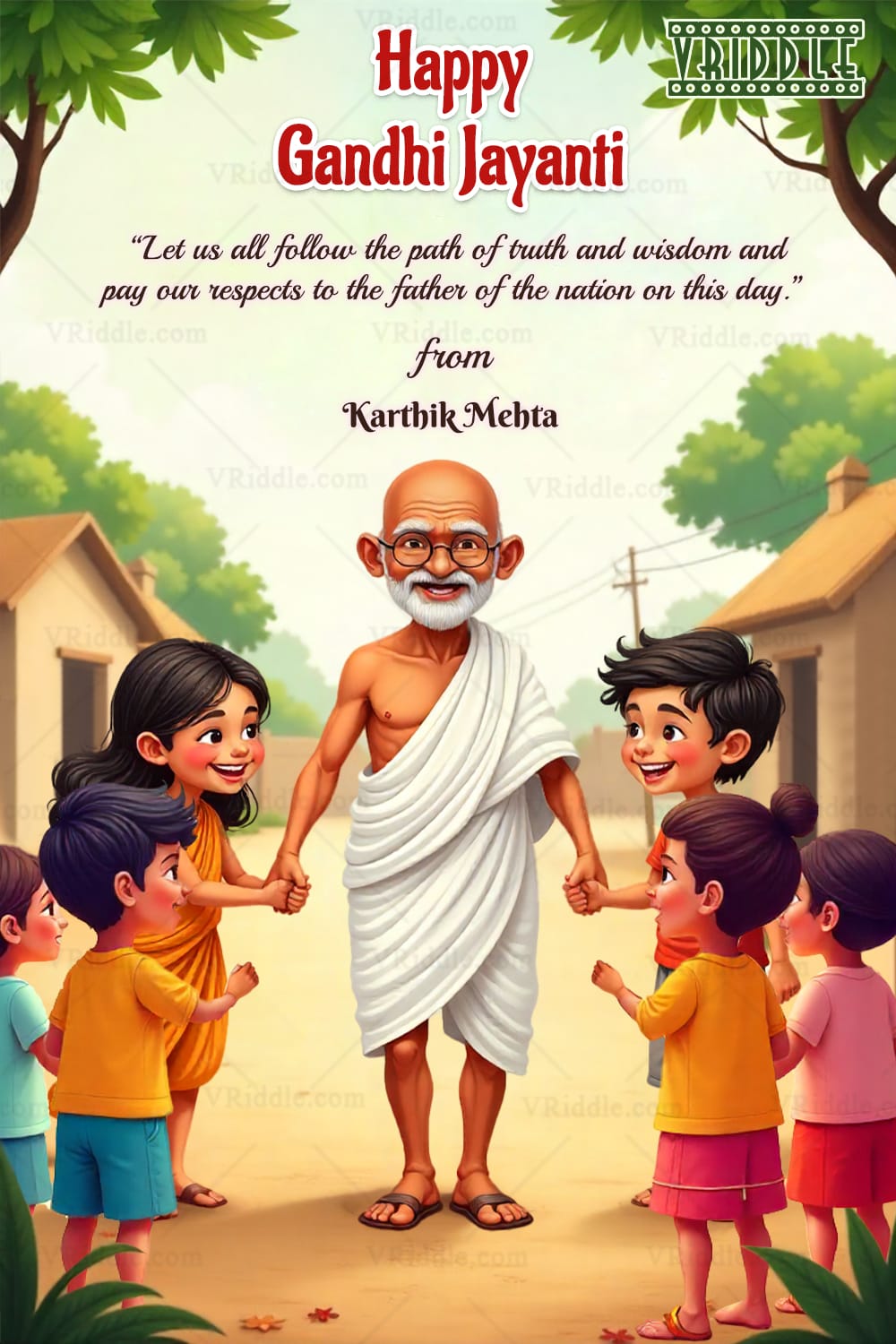 #GandhiJayanti #HappyGandhiJayanti #MahatmaGandhi #FatherOfTheNation #GandhiJayantiCard #TruthAndNonViolence #GandhiIllustration #ChildrenWithGandhi #VillageSceneArt #PatrioticGreeting #GandhiJayanti2026 #IndianHeritage #GandhijiQuotes #PeaceAndWisdom #CustomGreetingCard #GandhiWithKids #UnityAndPeace #IllustratedGandhi #CulturalGreetingCard #GandhiInspiration
