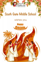 Orange theme Happy Onam Greeting Card, Kerala Women Dancing