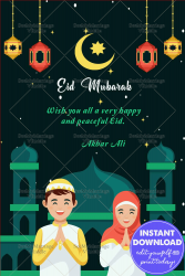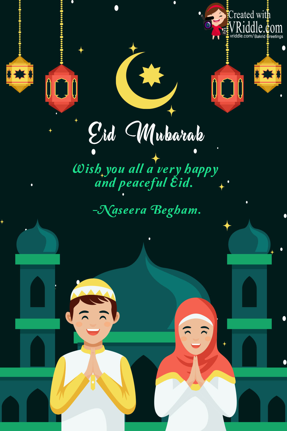 Simple Vector Design with Childrens Theme Eid -Bakrid Greeting Card